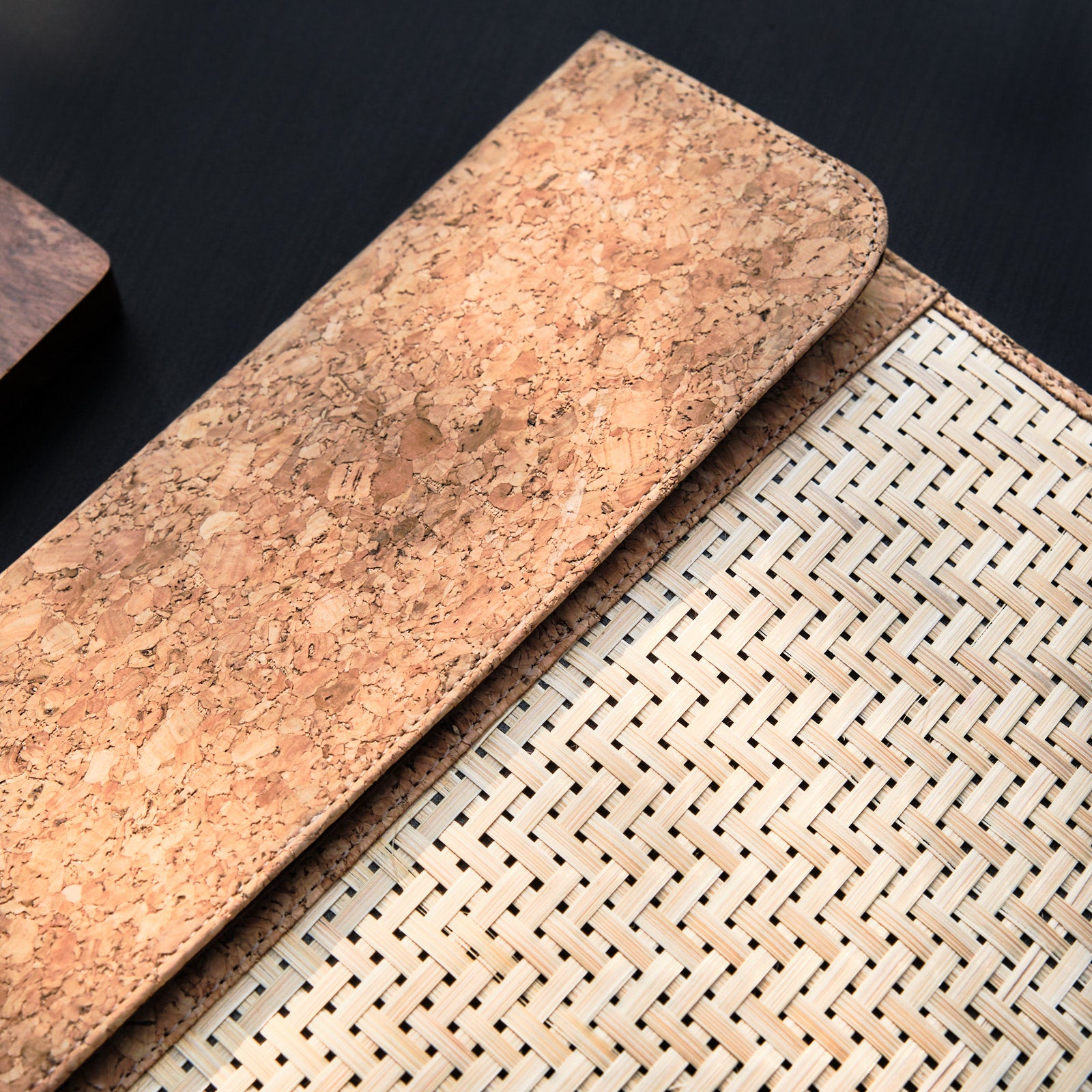 • Made with bamboo and cork.